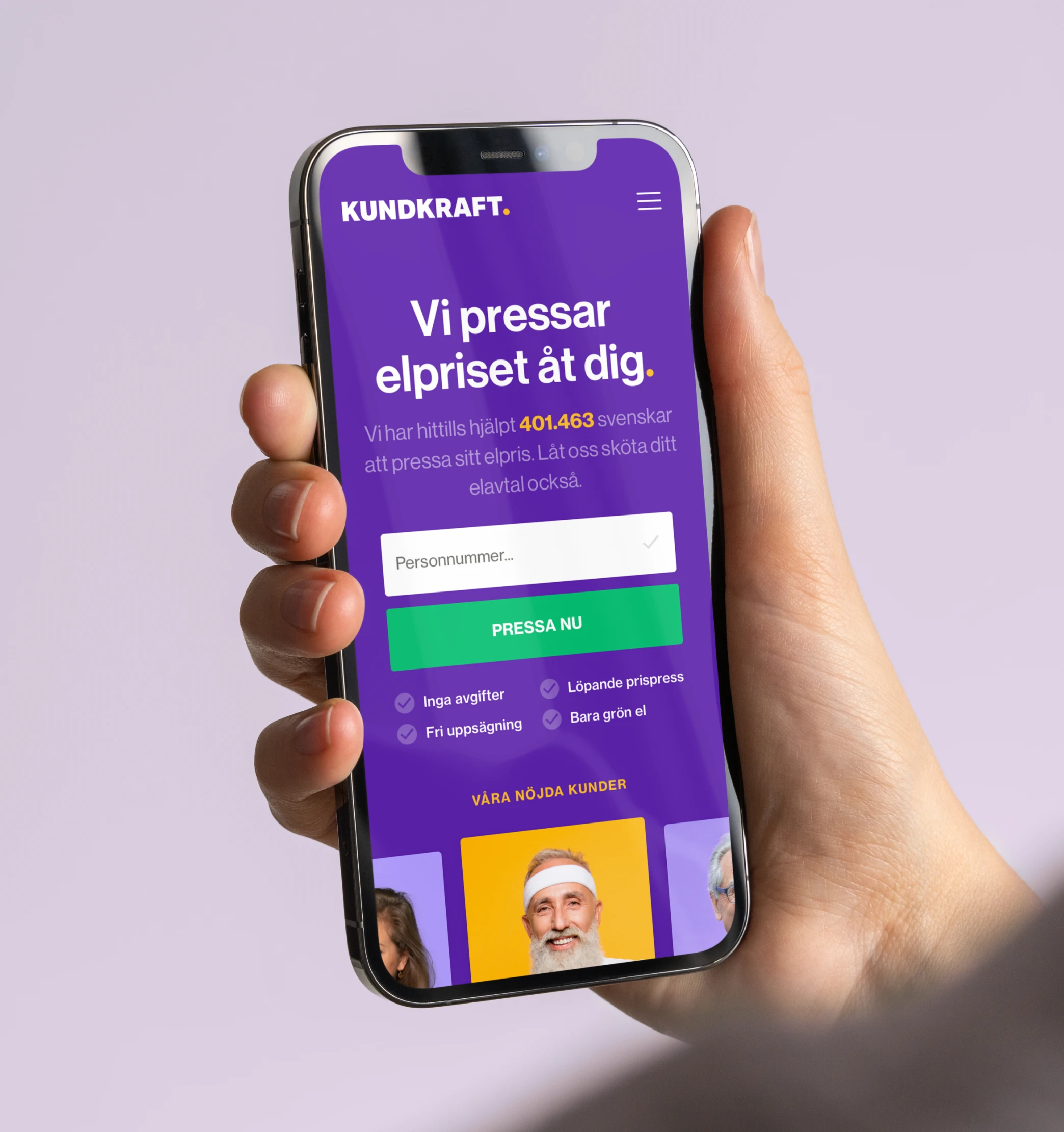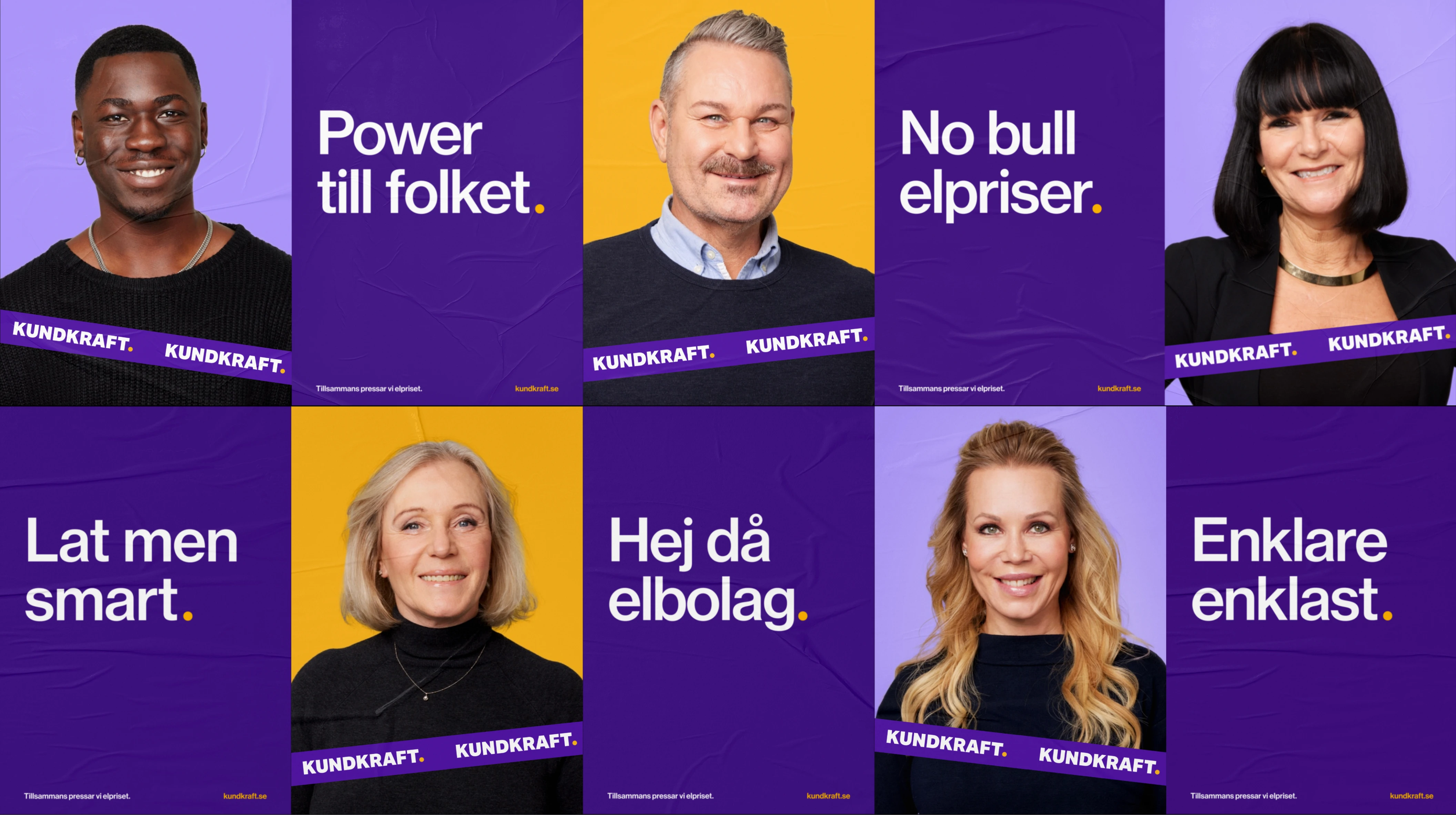 Kundkraft negotiates electricity contracts on behalf of a large member base. Schibsted gave us six weeks to deliver a new brand and website from scratch. Strategy, SEO analysis, brand identity, web, app, and ad campaigns. The design had to feel approachable without looking cheap. Bold colors and custom emojis gave the brand personality. The result: a significant increase in conversion.