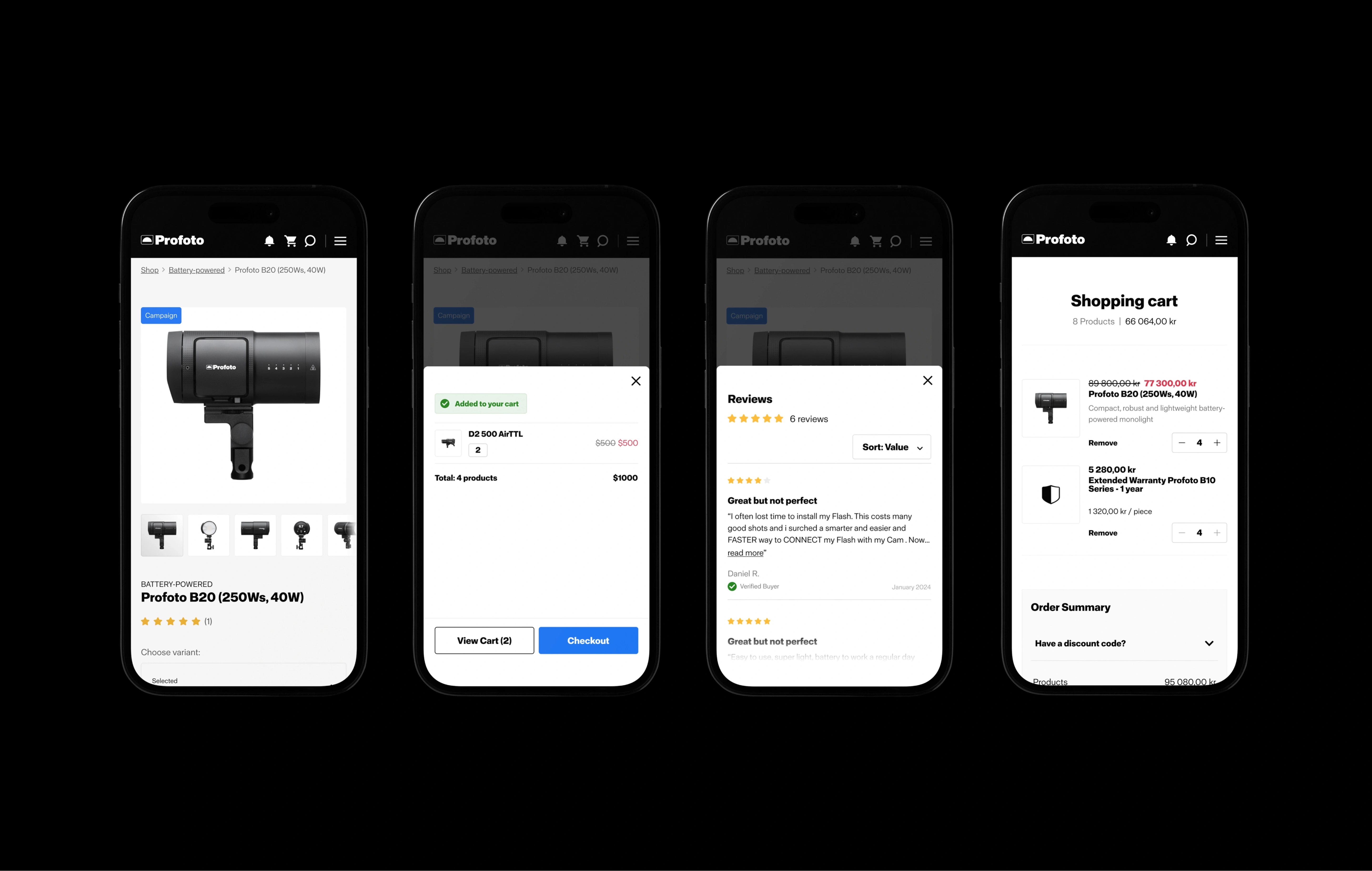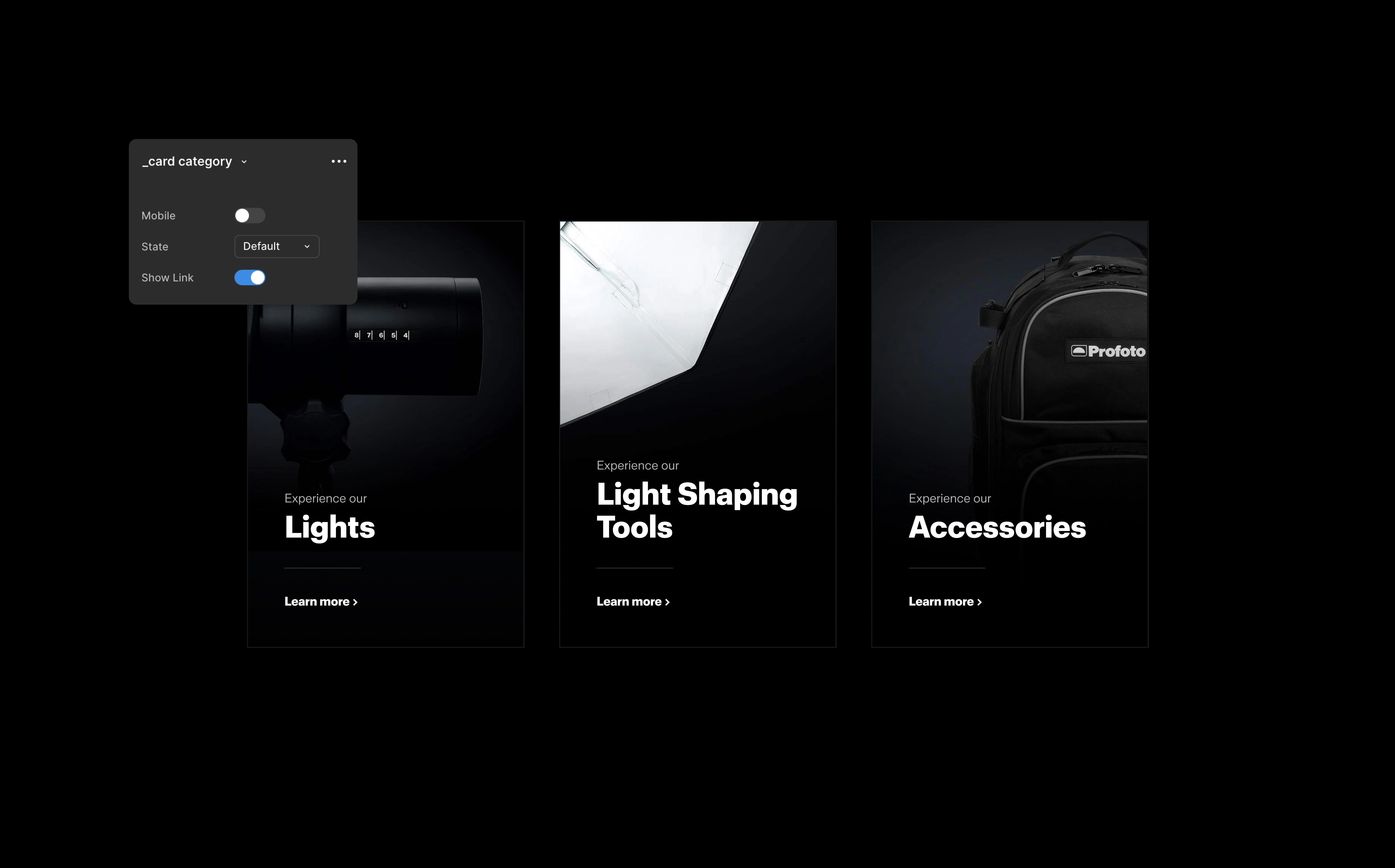 Profoto asked me to rethink the UX and UI for their e-commerce experience. The bigger challenge was building a scalable foundation underneath it. I designed and built a complete design system in Figma with four color modes, shared components, and modular patterns that could flex across the platform. Every component was built with variants, states, and responsive behavior baked in, giving the team a library they could trust and ship from without second-guessing.